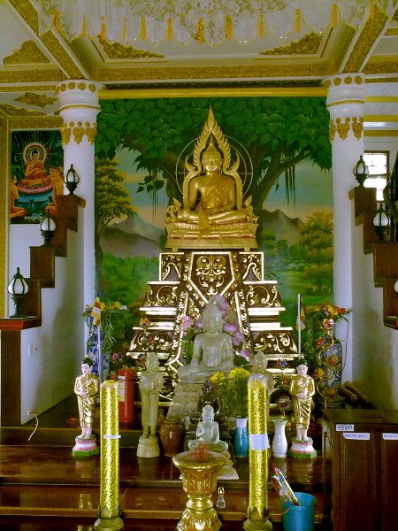 Tầng một chính điện là một không gian thoáng rộng, tô vẽ hoa văn khắp gian. Chính giữa là tượng Phật Thích Ca bằng đồng sáng loáng, cao khoảng hai mét được thỉnh từ Thái Lan. Ngoài ra còn nhiều tượng Phật đứng và ngồi khác được xếp đặt thứ tự. Bên hông gian chính có đường lên điện tầng hai.