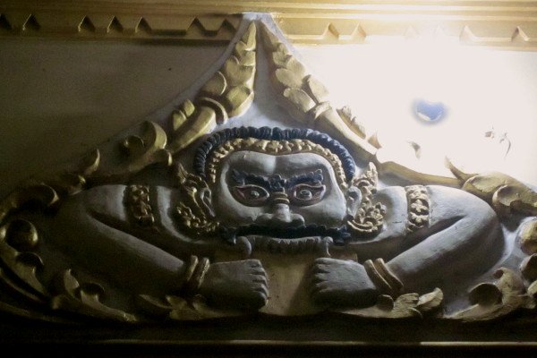Khi đi từ dưới tầng trệt lên các tầng trên, tôi cũng nhìn thấy có nhiều tượng chằn, tượng thần, tượng Phật, phù điêu … nhưng điều gây ấn tượng đặc biệt nhất là tượng một gương mặt chằn ăn một vòng tròn. Hỏi ra mới biết đó là tượng Reahu (hoặc Rìa-Hu hay còn gọi là Rahu). Tượng Rìa-hu – nhân vật đặc biệt được đắp nổi chỉ có phần đầu mà không có thân – đặt trên lầu sala phía bên phải của chùa khi bước lên chính điện, là một câu chuyện dài giải thích hiện tượng nhật thực, nguyệt thực của người Khmer Nam bộ.