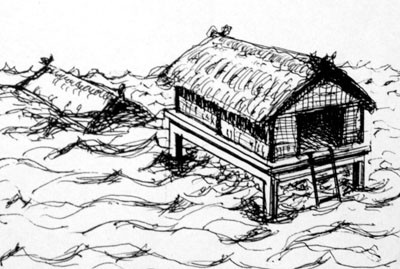 Để giúp người dân vùng ngập lụt ĐBSCL sống chung với lũ, từ những năm cuối thế kỷ XX, Chính phủ đã cho lập quy hoạch và xúc tiến nhiều kế hoạch đầu tư xây dựng cụm, tuyến dân cư vượt lũ bằng nguồn vốn ngân sách nhà nước và đã đạt được nhiều kết quả. Song, số lượng làng mạc bị ngập lụt hàng năm từ Bắc vào Nam còn rất nhiều; nếu ở nơi nào nhà nước cũng bỏ vốn đầu tư xây dựng công trình vượt lũ thì e rằng sẽ rất khó giải quyết. Do đó, để tiếp tục giúp đỡ các hộ dân cư nghèo vùng bị ngập lụt thoát nạn “thuỷ tặc”, sống chung với lũ, nhà nước cần có chính sách huy động tài trợ xã hội hỗ trợ cho các hộ nghèo tạo dựng công trình vượt lũ tại nơi cư trú, với nhiều hình thức thích hợp, chi phí thấp. ở miền Bắc và miền Trung việc giải quyết công trình vượt lũ không nhất thiết phải giống như ở ĐBSCL; mà có thể làm theo mô hình “sàn vượt lũ gia đình” tại nơi cư trú (hình 1).