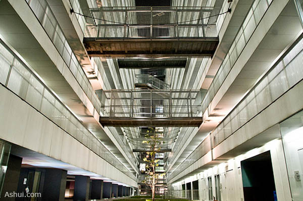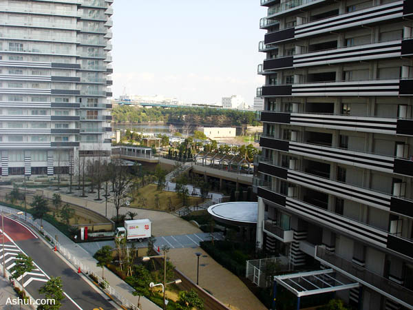 Khu Harumi Dori được sử dụng là khu phức hợp bao gồm khu văn phòng, shopping center và bãi đỗ xe cao tầng.